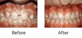 Sometimes braces are not needed to get noticeable improvements in tooth alignment. This patient was first seen at age seven for crowding of the lower permanent teeth. A procedure was performed to reduce the width of the adjacent baby teeth and the permanent incisors aligned on their own in nine months.